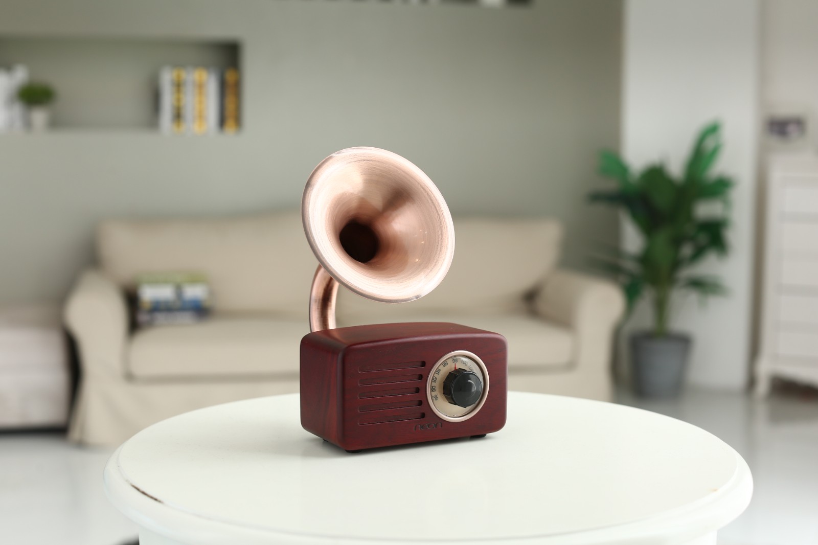 留聲機造型的號角藍牙收音機,造型別致,人聲飽滿,真號角喇叭設計,聲音真的從號角傳導出來!