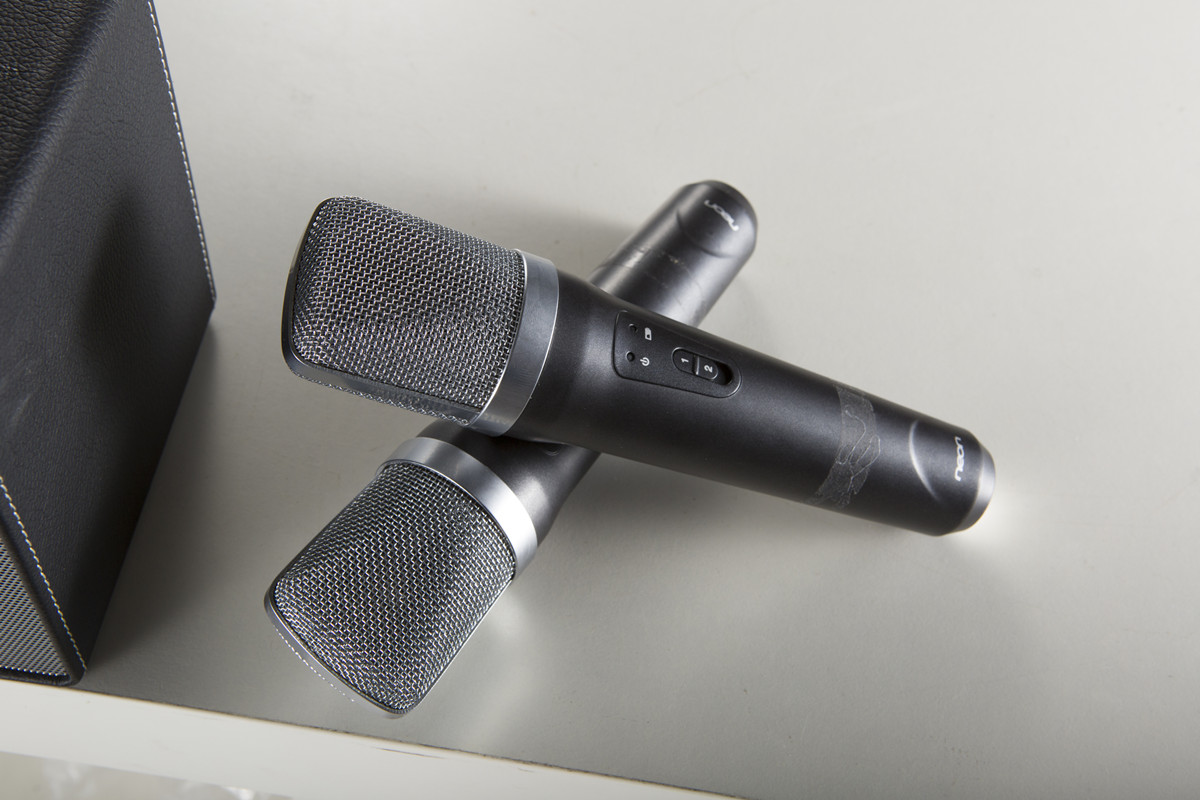 簡約造型,全身包皮,皮革提手,雙無線麥克風(fēng),單獨麥克風(fēng)echo調(diào)節(jié),內(nèi)置鋰電,聲音甜美,K歌神器!