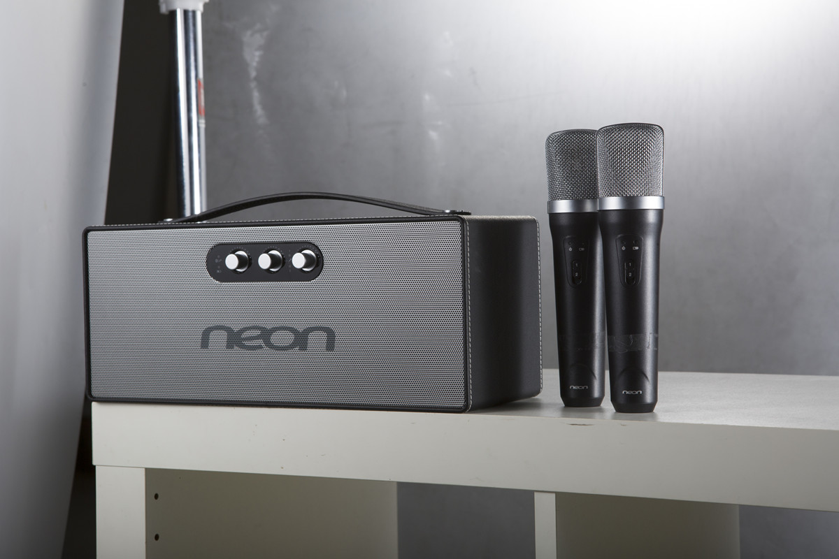 簡約造型,全身包皮,皮革提手,雙無線麥克風(fēng),單獨麥克風(fēng)echo調(diào)節(jié),內(nèi)置鋰電,聲音甜美,K歌神器!